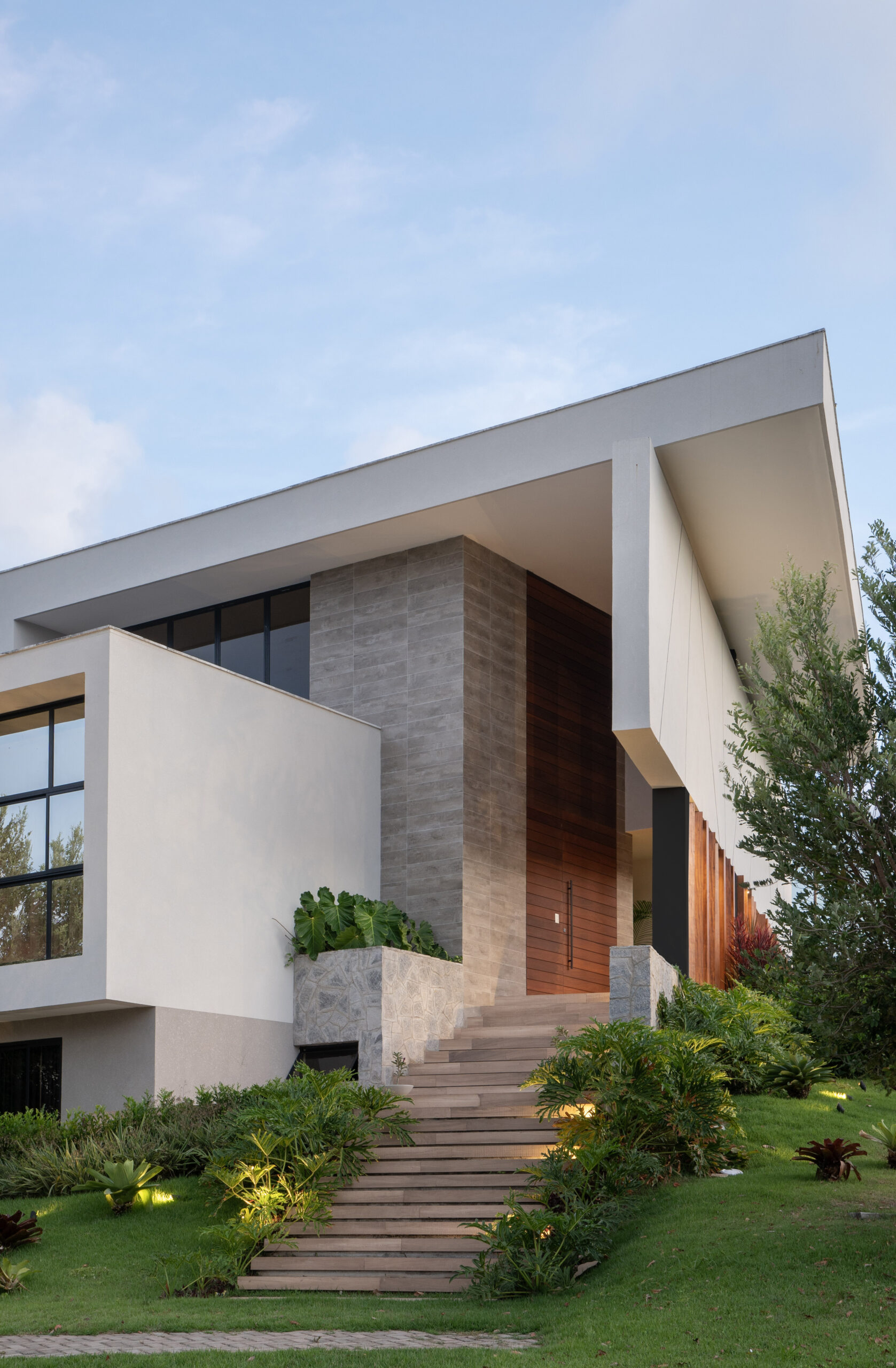 Aproveitamos a posição privilegiada do terreno de esquina para distribuir os ambientes de forma estratégica, garantindo uma sensação de amplitude sem comprometer a discrição e o acolhimento da família.
