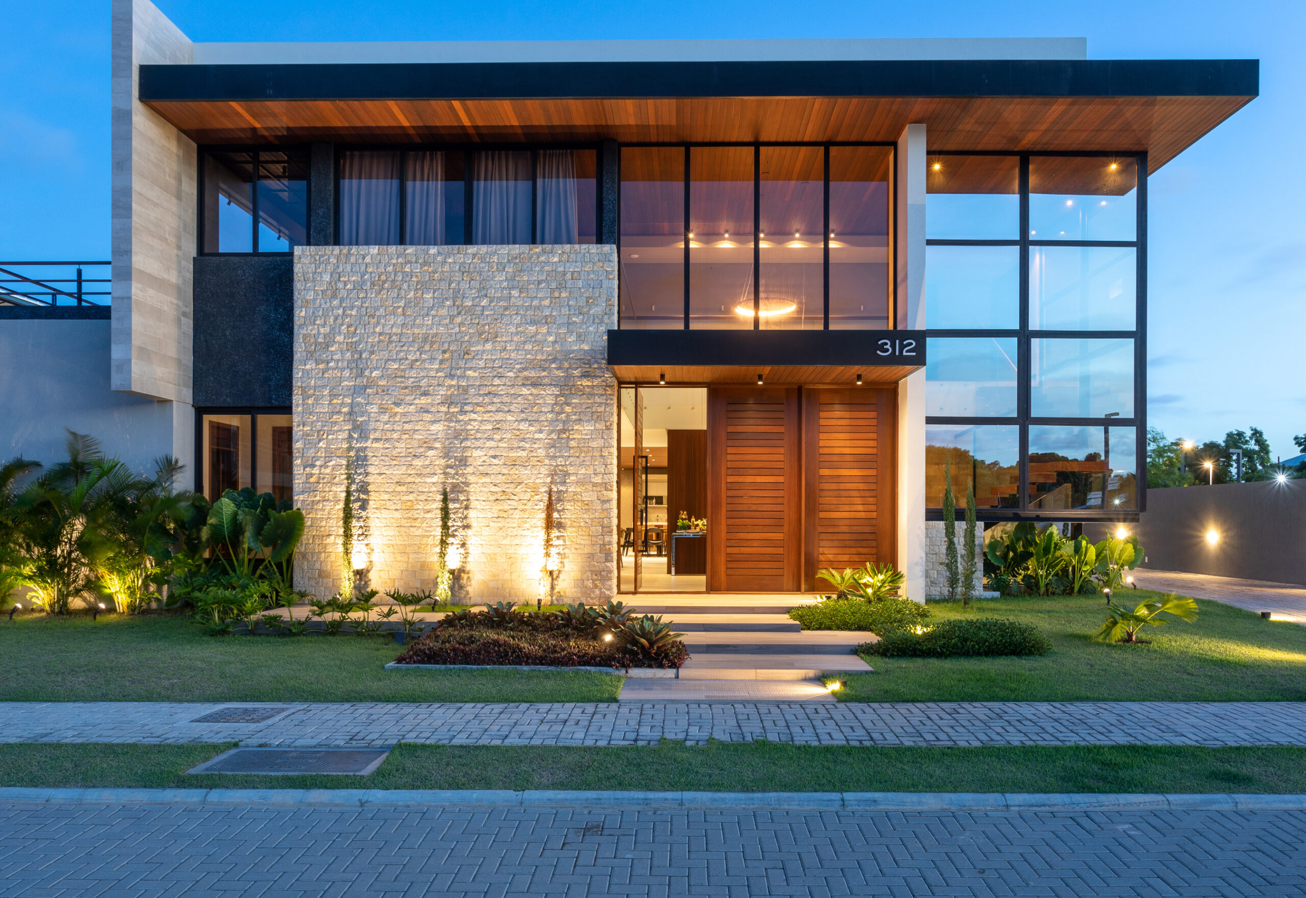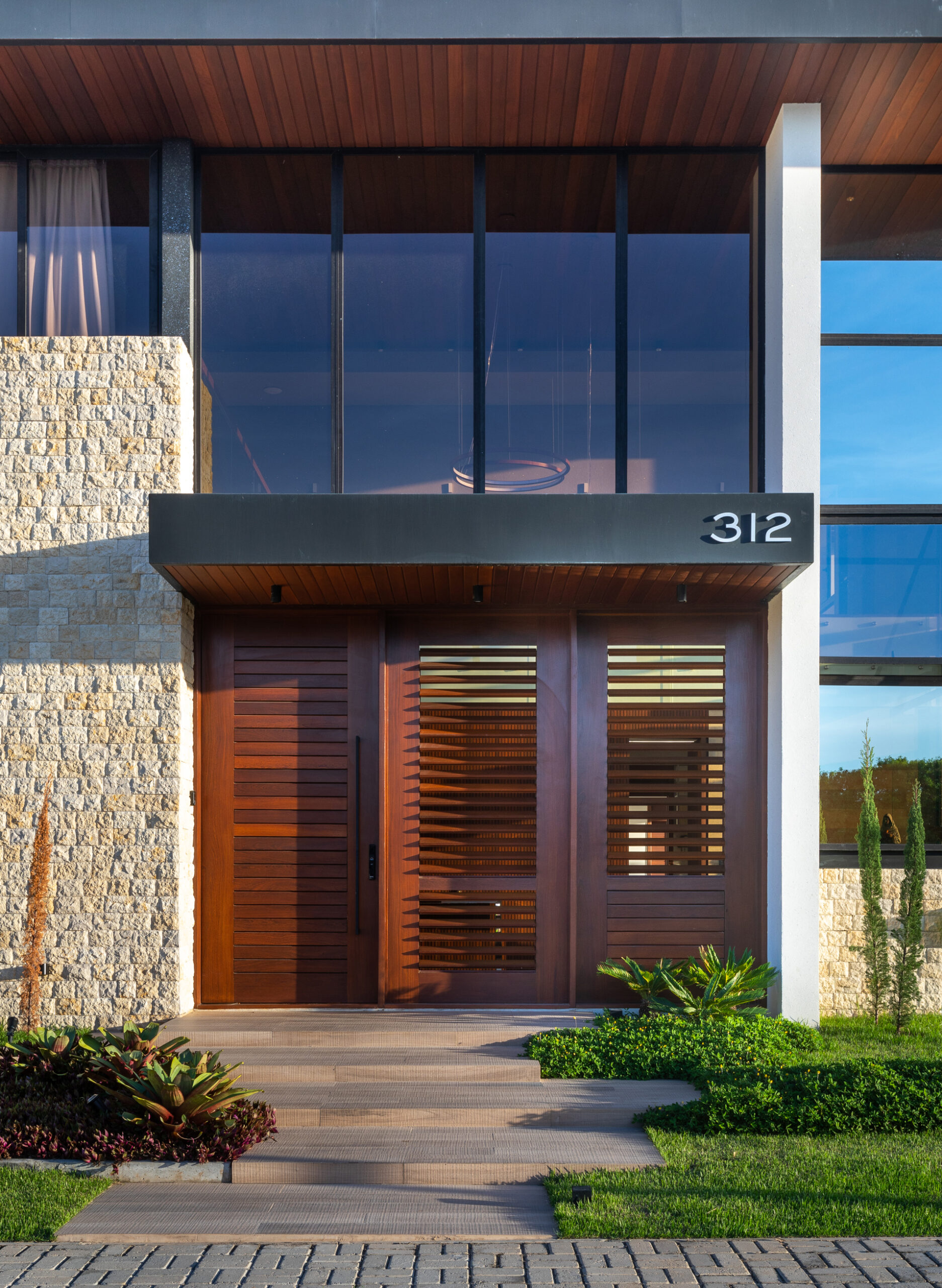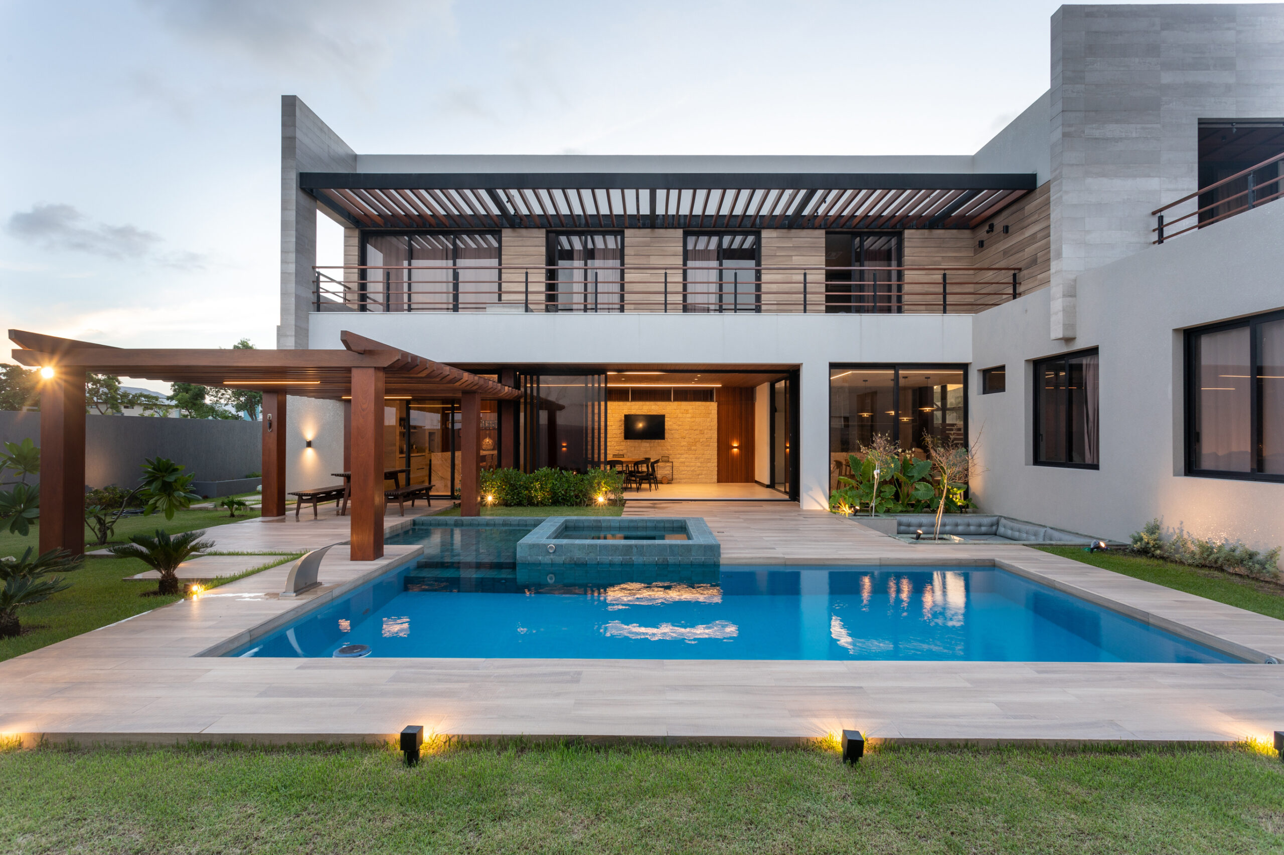 Nosso objetivo foi projetar um espaço que integrasse sofisticação e funcionalidade. Para isso, buscamos uma combinação harmoniosa de materiais: o concreto trouxe solidez, a madeira adicionou calor e acolhimento, e o vidro proporcionou um toque moderno, além de estabelecer uma conexão visual com o ambiente externo. Dedicamos especial atenção à área de lazer, onde criamos uma integração planejada entre o terraço gourmet, a piscina e o jardim, resultando em uma atmosfera de tranquilidade. A hidromassagem embutida na piscina elevou ainda mais o nível de conforto e luxo do espaço, tornando-o um convite irresistível ao lazer e ao relaxamento, perfeito para reuniões entre amigos e momentos de convivência familiar.